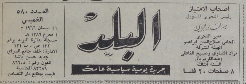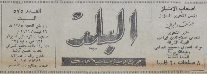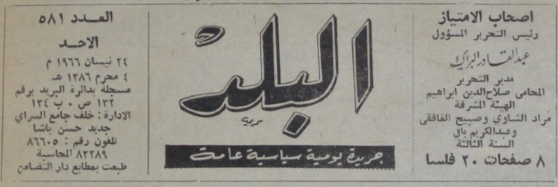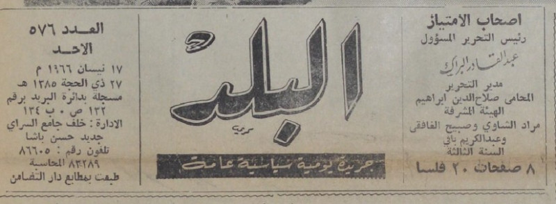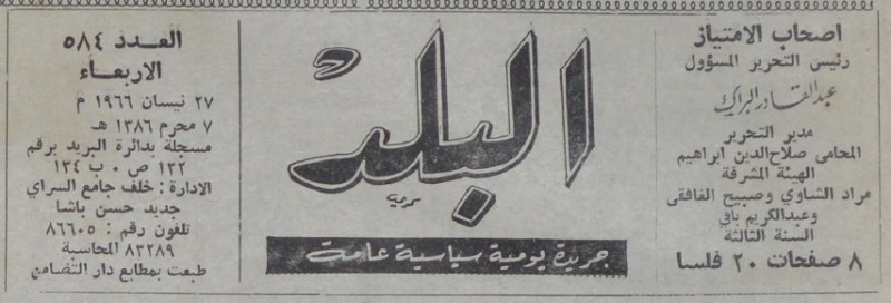 رئيس التحرير المسؤول : عبد القادر البراك.