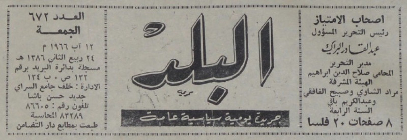 رئيس التحرير المسؤول : عبد القادر البراك.