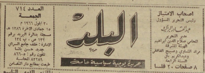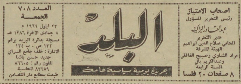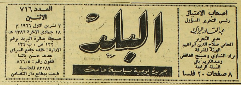 رئيس التحرير المسؤول : عبد القادر البراك.