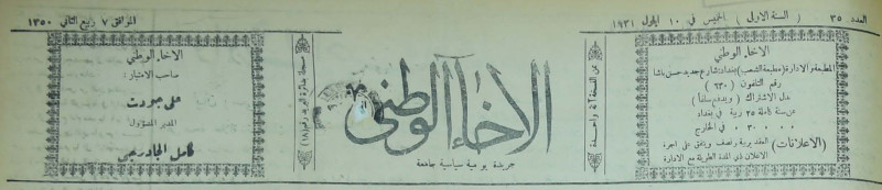 صاحب امتياز الجريدة : علي جودت.