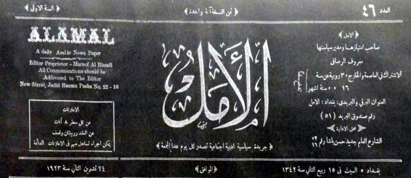 صاحب الامتياز ومدير سياستها : معروف الرصافي.