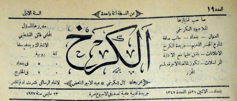 صاحب امتيازها : ملا عبود الكرخي.