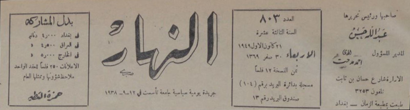 صاحبها ورئيس تحريرها : عبد الله حسن.