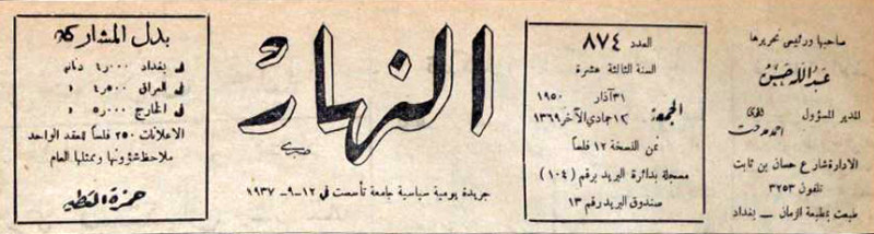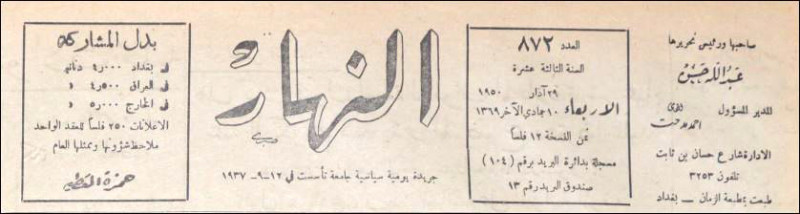 النهار (جريدة : بغداد، العراق : 1937)