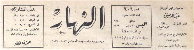 النهار (جريدة : بغداد، العراق : 1937)