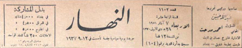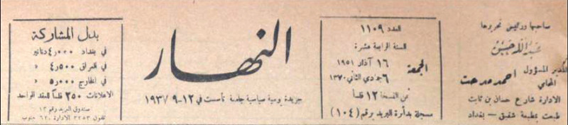 النهار (جريدة : بغداد، العراق : 1937)