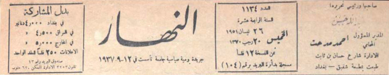 النهار (جريدة : بغداد، العراق : 1937)