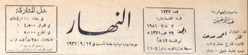 النهار (جريدة : بغداد، العراق : 1937)