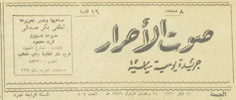 صاحبها ومدير تحريرها : لطفي بكر صدقي.
