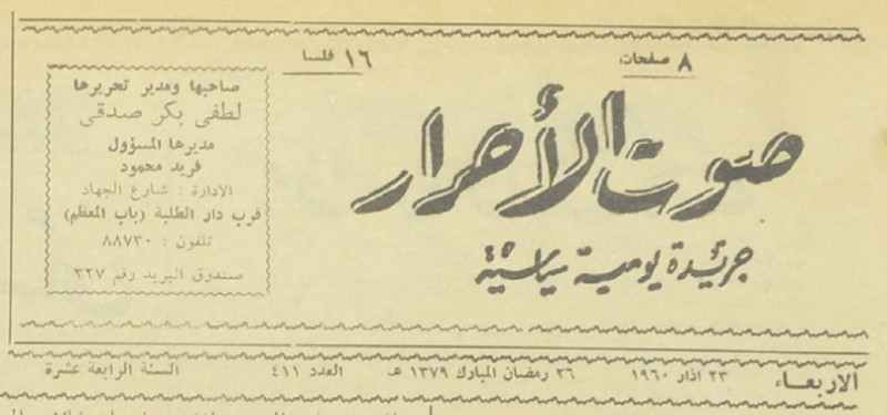 جريدة يومية سياسية جامعة : لسان حال حزب الاحرار.