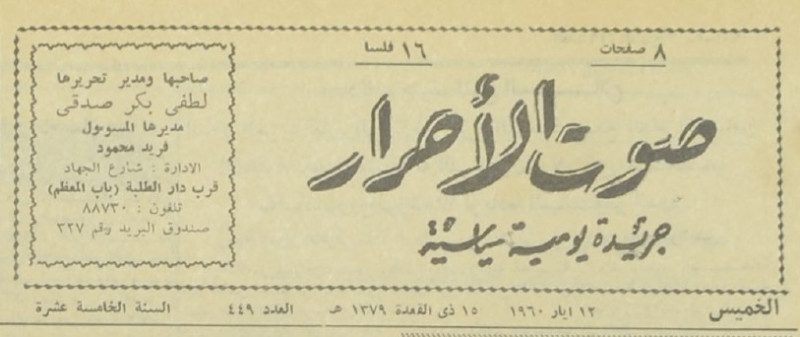 صاحبها ومدير تحريرها : لطفي بكر صدقي.