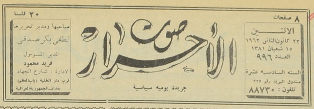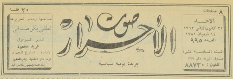 صاحبها ومدير تحريرها : لطفي بكر صدقي.