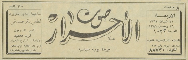 جريدة يومية سياسية جامعة : لسان حال حزب الاحرار.