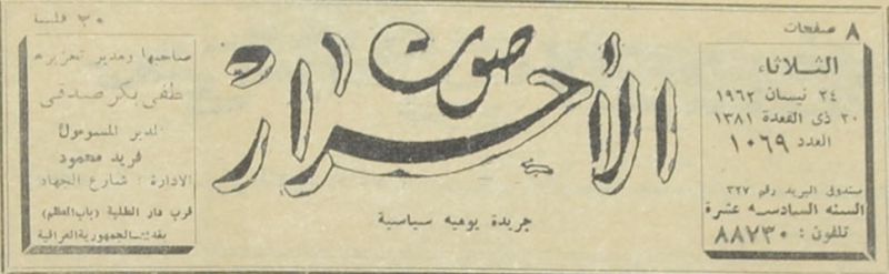 صاحبها ومدير تحريرها : لطفي بكر صدقي.