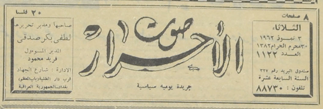 صاحبها ومدير تحريرها : لطفي بكر صدقي.