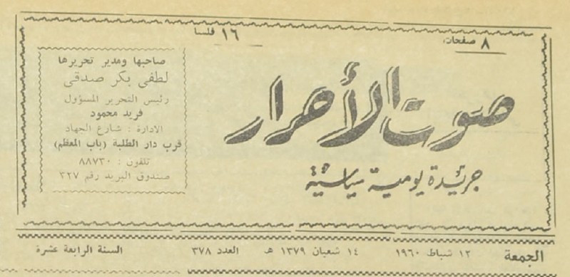 جريدة يومية سياسية جامعة : لسان حال حزب الاحرار.