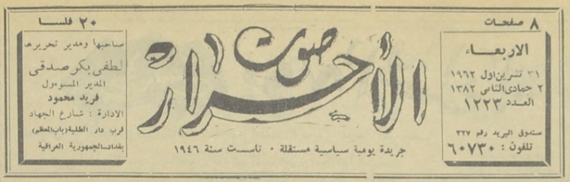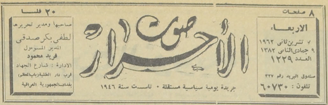 صاحبها ومدير تحريرها : لطفي بكر صدقي.