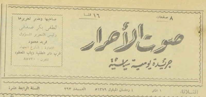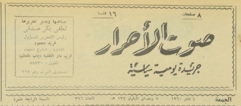 جريدة يومية سياسية جامعة : لسان حال حزب الاحرار.