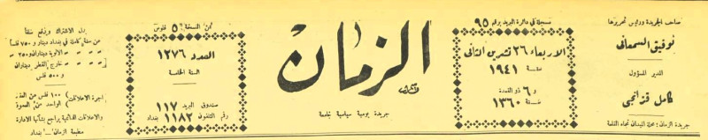 الزمان (جريدة : بغداد، العراق : 1937)