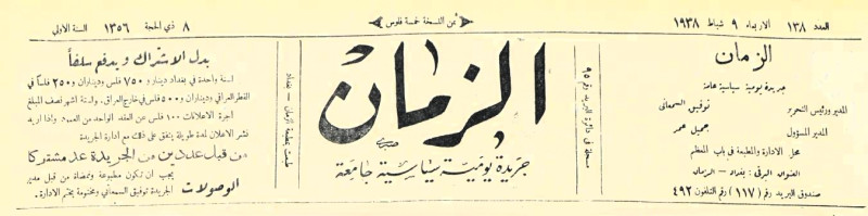 الزمان (جريدة : بغداد، العراق : 1937)