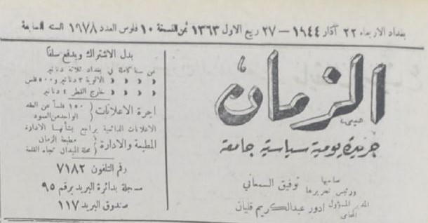 الزمان (جريدة : بغداد، العراق : 1937)