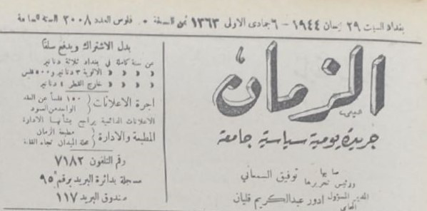 الزمان (جريدة : بغداد، العراق : 1937)