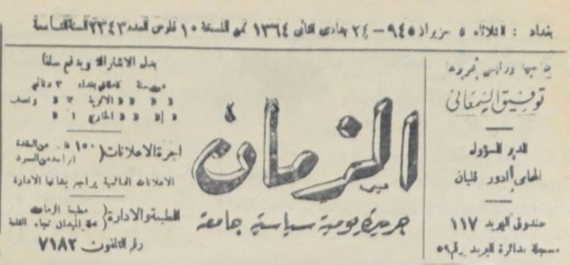 الزمان (جريدة : بغداد، العراق : 1937)