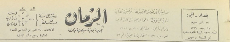 صاحبها ومدير تحريرها : توفيق السمعاني.