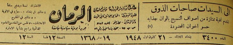 الزمان (جريدة : بغداد، العراق : 1937)