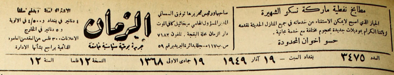 الزمان (جريدة : بغداد، العراق : 1937)