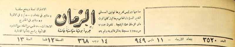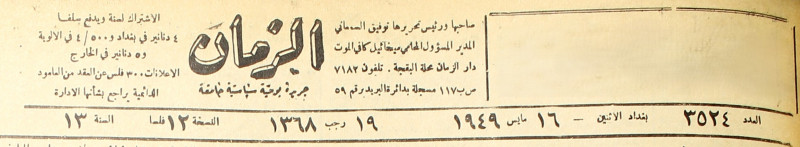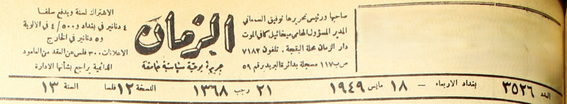 صاحبها ومدير تحريرها : توفيق السمعاني.