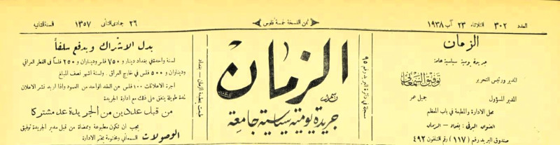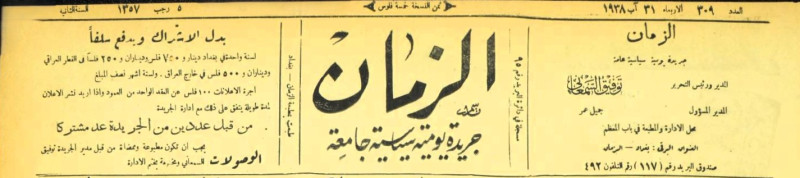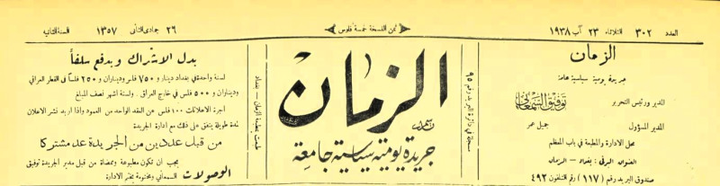 صاحبها ومدير تحريرها : توفيق السمعاني.