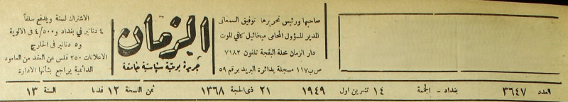 الزمان (جريدة : بغداد، العراق : 1937)