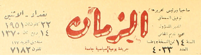 صاحبها ومدير تحريرها : توفيق السمعاني.