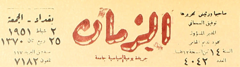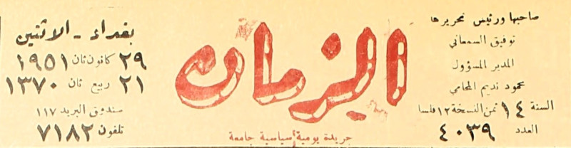 الزمان (جريدة : بغداد، العراق : 1937)