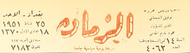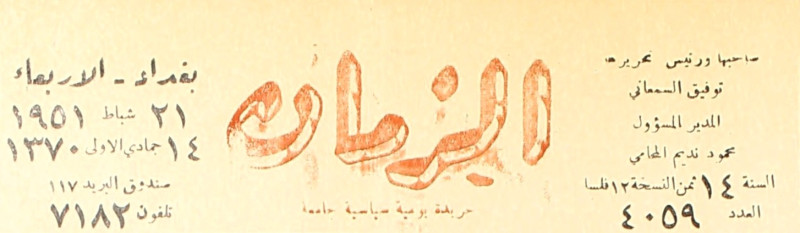 صاحبها ومدير تحريرها : توفيق السمعاني.