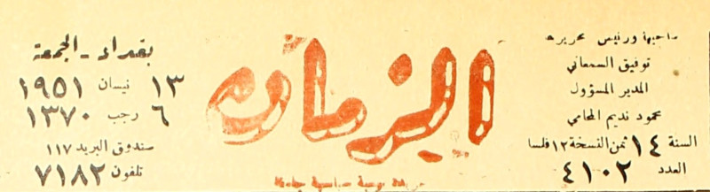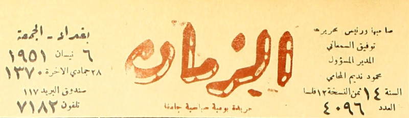 الزمان (جريدة : بغداد، العراق : 1937)