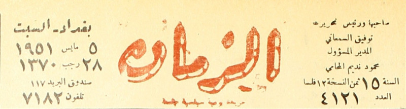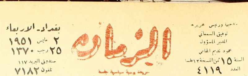 صاحبها ومدير تحريرها : توفيق السمعاني.