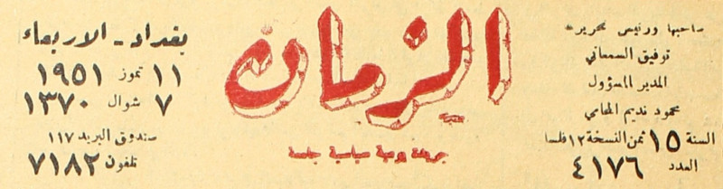 صاحبها ومدير تحريرها : توفيق السمعاني.