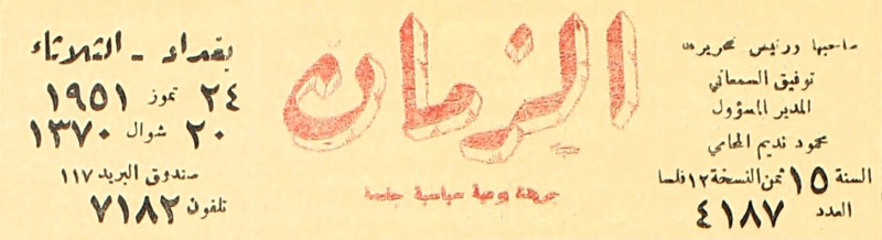 الزمان (جريدة : بغداد، العراق : 1937)