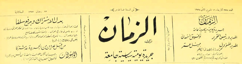 صاحبها ومدير تحريرها : توفيق السمعاني.
