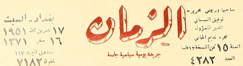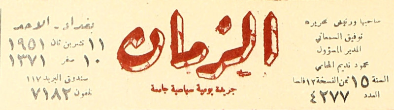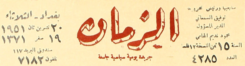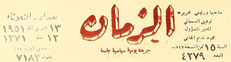 صاحبها ومدير تحريرها : توفيق السمعاني.