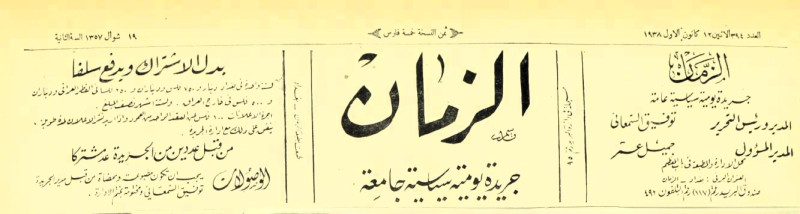 صاحبها ومدير تحريرها : توفيق السمعاني.