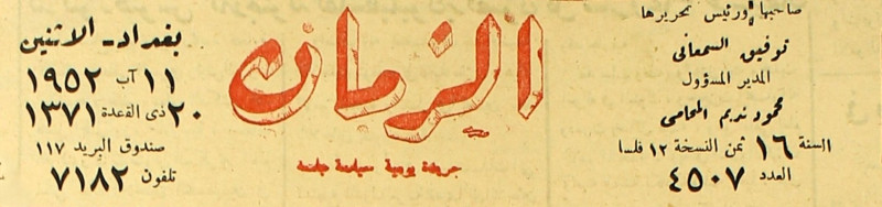 الزمان (جريدة : بغداد، العراق : 1937)
