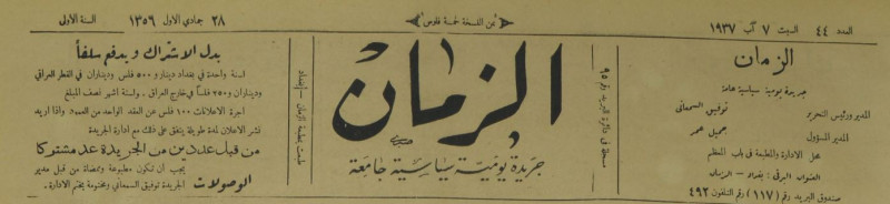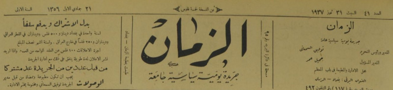 الزمان (جريدة : بغداد، العراق : 1937)