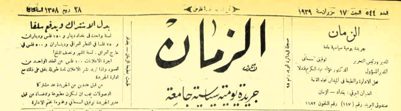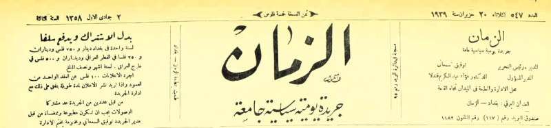 الزمان (جريدة : بغداد، العراق : 1937)