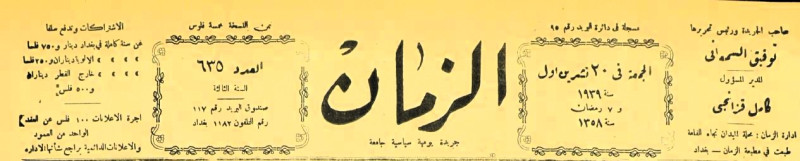صاحبها ومدير تحريرها : توفيق السمعاني.