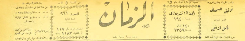 صاحبها ومدير تحريرها : توفيق السمعاني.