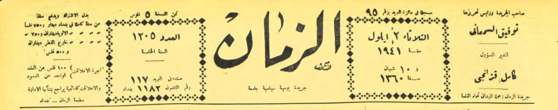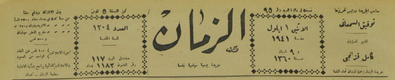 صاحبها ومدير تحريرها : توفيق السمعاني.