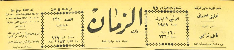 الزمان (جريدة : بغداد، العراق : 1937)